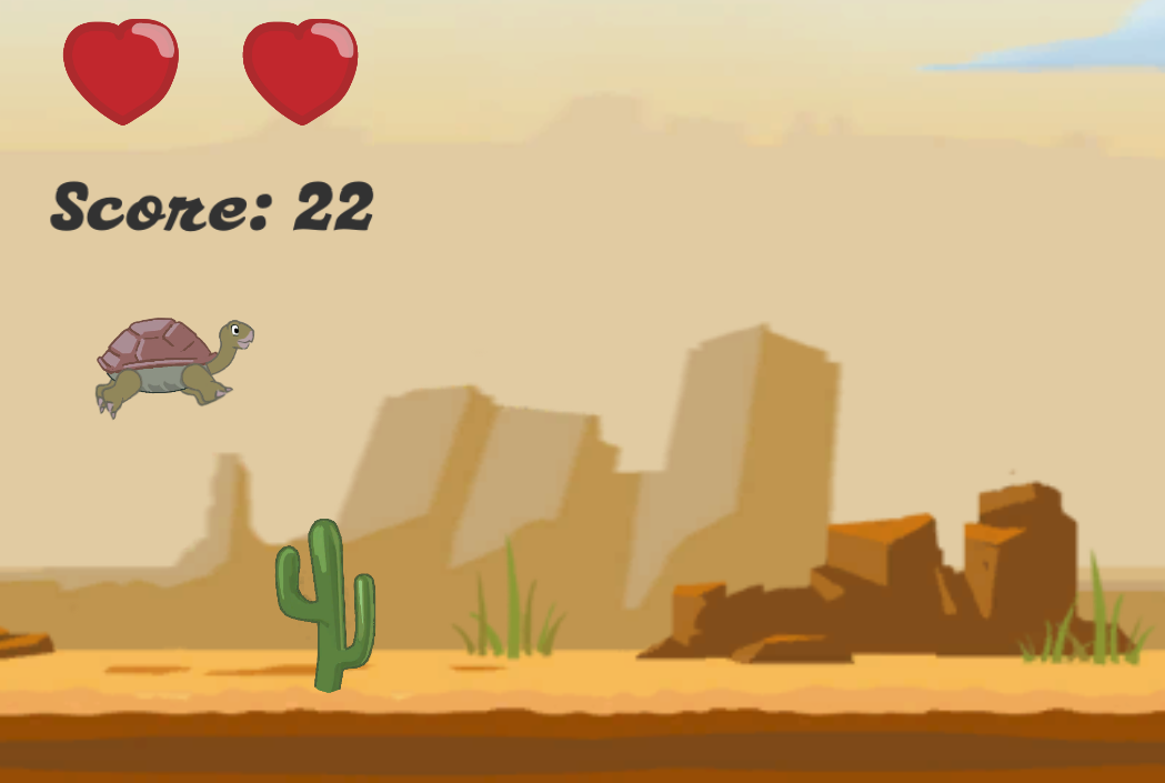 The Unity Game, where a player controls a turtle and jumps over the obstacles.
